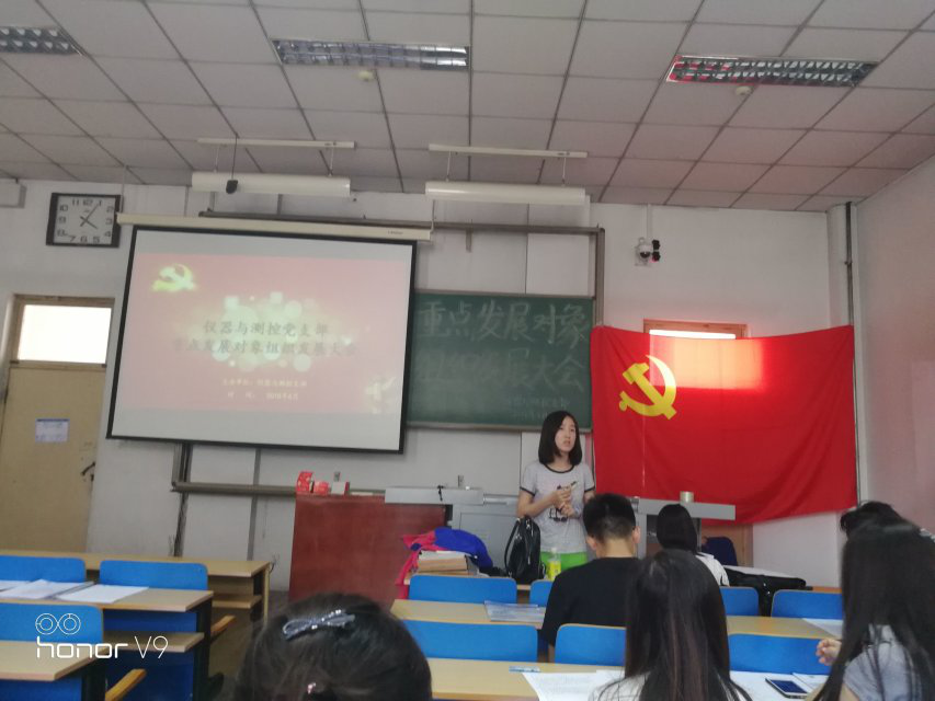 仪器与测控支部在11310H召开重点发展对象组织发展大会以及学习习近平总书记在北京大学师生座谈会上的重要讲话精神,会议由吴宸同志主持,支部书记戴萧嫣老师出席此次会议,我支部所有的正式党员、预备党员和本次参选的重点发展对象参与会议。