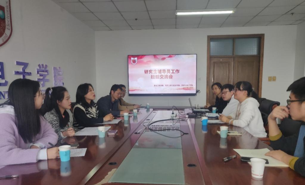研究生辅导员工作交流分享会在主楼1207会议室召开举行。机电工程学院辅导员武瑞芳、王丙龙,化学工程与技术学院辅导员贾苗苗,海棠书屋
