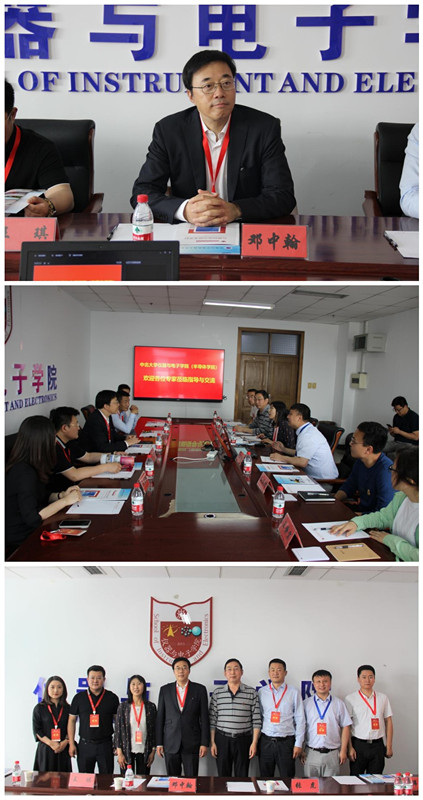郝晓剑书记代表学院对邓中翰院士一行表示欢迎和感谢,并简单介绍了一下学院总体情况。邓院士介绍了其团队成员并观看了仪器科学与技术学科宣传片,梁庭副院长补充介绍了半导体学院和半导体信息器件与系统山西省实验室的建设情况。