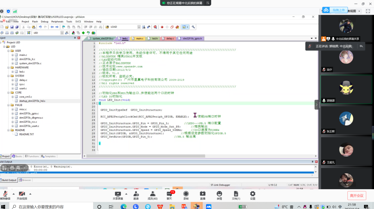 本次培训主要针对stm32学习环境的搭建,新工程的建立,led灯工程等方面的内容做了详细的介绍。实验室侯帅鹏学长简单介绍了stm32能实现的各种功能,使枯燥的学习过程变得鲜活有趣,大大增加了大家学习的兴趣。培训期间,学长帮助解决了同学们在先前学习过程中遇到的一些问题等,带领大家重温了上节课的内容。培训结束后,学长还给同学们布置了作业,以此巩固同学们的知识,并加以强化训练。