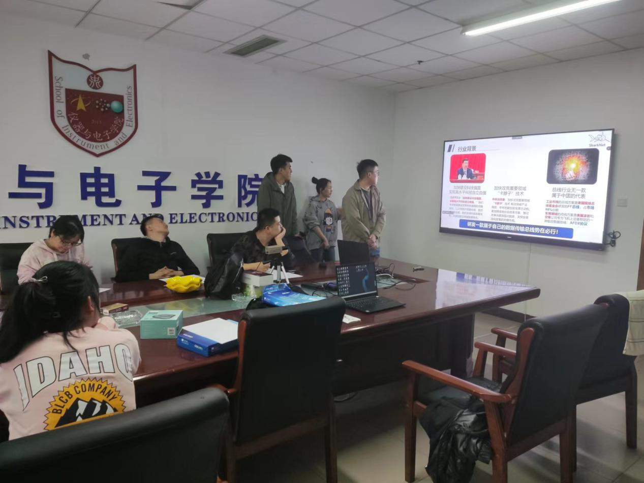 第八届“互联网+”大学生创新创业大赛院赛答辩正式开始。90余组答辩队伍分线上线下分别进行答辩,在准备区充分地准备后按照序号前往会议室或者线上会议依次进行答辩。