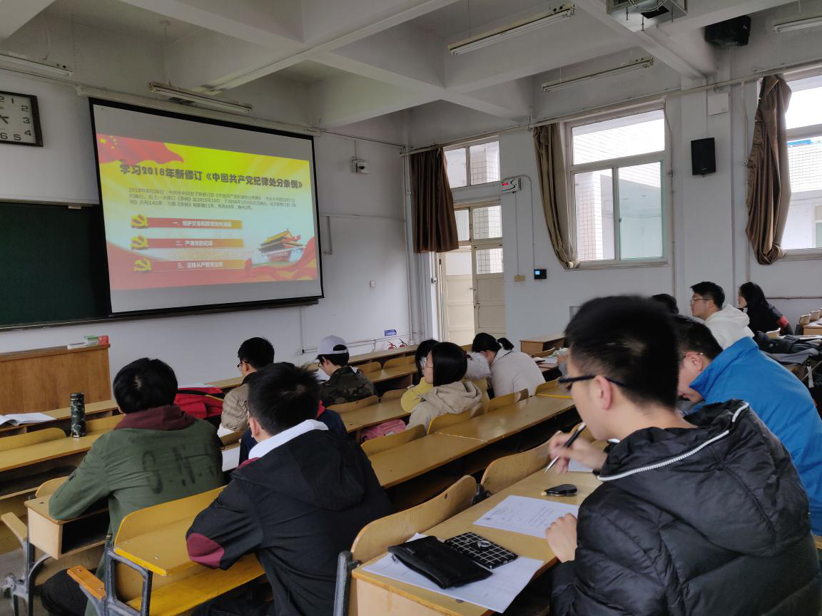 2018年10月25日,仪器与测控支部在10304H召开了学习新版《中国共产党纪律处分条例》交流会。本支部全体党员、预备党员及重点发展对象参与会议。