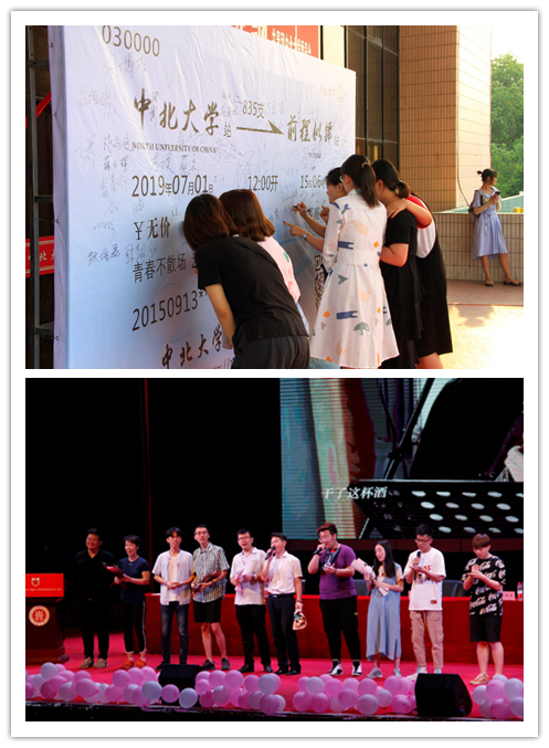 毕业典礼正式开始之前,师生共同观看了学院精心制作的毕业短片《夏天的风》,记录了毕业生在校的欢乐时光。他们即将在这个夏天扬帆远航,师长们也为他们送上最美好的祝福,院党委副书记高宏图与毕业班班主任们携毕业生代表一起合唱《干杯,朋友》,引得阵阵欢呼,表现着浓浓的师生情。之后,各班的逐一合唱更是让人不禁泪目,毕业生们唱响离校前最后的音符,表达对青春和母校的依恋。
