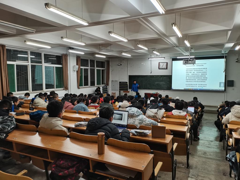 本次培训的主要内容是51单片机的pwm以及定时器函数的编译,除此之外还向同学们讲解了启辰杯小车部分零件之间的连接。培训开始19级常满鹏同学热情洋溢的向同学们讲解了pwm和定时器的作用,并通过一个程序让同学们深入了解。在此之后他耐心的回答了同学们提出的问题。最后他向同学们说明了在搭建小车时应注意的问题,并现场演示了部分零件的连接。