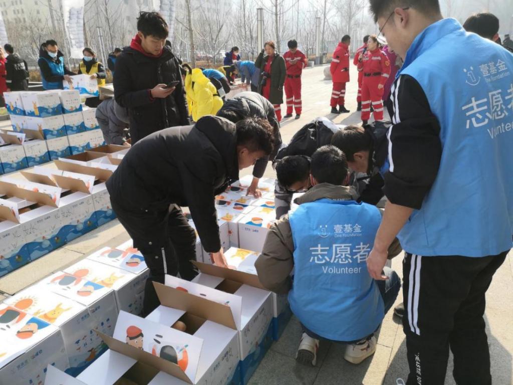 仪米阳光志愿服务队在山西国际金融中心东广场参加了由深圳壹基金公益基金会、共青团山西省委、山西天龙救援队联合主办的主题为“今年冬天温暖有你一份”2020年壹基金温暖包山西地区的启动仪式,提供志愿服务。