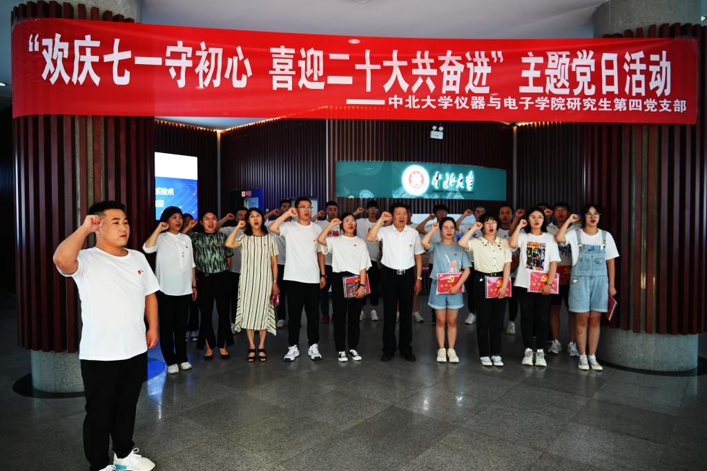 研究生第四党支部举办“欢庆七一守初心 喜迎二十大共奋进”主题党日活动。活动在省部共建动态测试技术国家重点实验室展厅举行。校党委书记沈兴全以普通党员身份参加,并为党员代表发放了信仰大礼包:守规矩(党章)、讲信仰(政治生日卡)、爱学习(笔记本)。党委组织部、学院相关负责人及学院研究生第四党支部党员参加了活动。