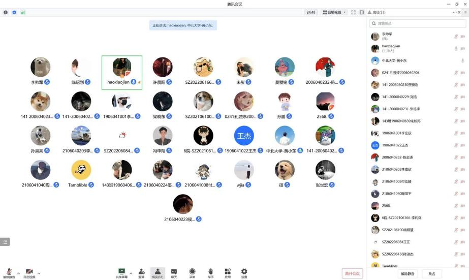 2022年11月20日上午,郝晓剑老师通过线上举行了全员导师制学生组会。郝晓剑老师团队的博士、硕士、毕业设计学生和本科各年级的全员导师制学生都参加了本次会议。