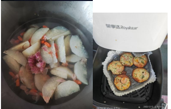 本次活动由组长组织周末回家的同学们自发制作一份夜宵。当今时代,夜生活日渐丰富,大家或多或少睡得晚了,夜一深,人就容易饿,所以一顿解馋又不给身体带来负担的夜宵可以抚慰疲累的身心,安顿浮躁了一天的心灵。一小碗虾仁蛋炒饭,算不上豪华,但也能给自己带来不小的满足感,给今天和明天的自己充充电,把今天晚上过舒服了,把明天过好了。一盘自己最喜欢的饺子,煮自己最喜欢的口味,一切都是那么随性,热气追赶着出锅的饺子,撞上倾倒的香醋、香油,要是南方人还得来点酱油,调配出自己最爱的比例,给压抑的心脏肆意跳动的权利。奶油小泡芙,小仙女的选择,香甜绵密的奶油被舌头抿开,丝丝的奶香通过味蕾,填补肚子的空虚。最豪横的莫过于一碗杂酱面了,豪爽的一勺肉酱,潇洒的擦上黄瓜丝,飘逸的一勺酱料,狂野地搅拌,大口的“炫”进嘴里,世间豪横莫过于此。