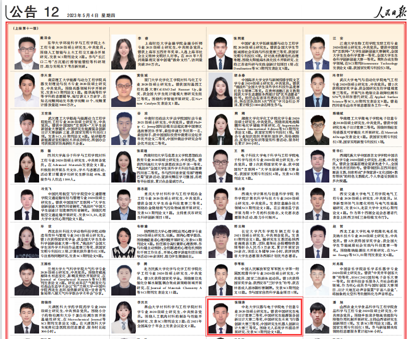 5月4日,《人民日报》刊登了2021-2022学年度研究生国家奖学金获奖学生代表名录,海棠书屋