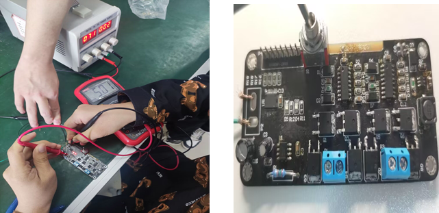 在辅导过程中,赵锐老师强调了同学们在焊接时中要注意相关元器件的在电路板上位置的分布,不要烫坏元器件。温焕飞老师提醒同学们在合作焊接中要注意工作量的合理分配。在驱动板的焊接过程中,各小组成员之间充分发挥团队合作精神,明确了各小组成员的分工,使整体电路板的焊接能够高效、准确的完成。通过该阶段同学们进行实物焊接,锻炼了同学们的动手能力,对同学们的动手能力有很大的提升帮助。