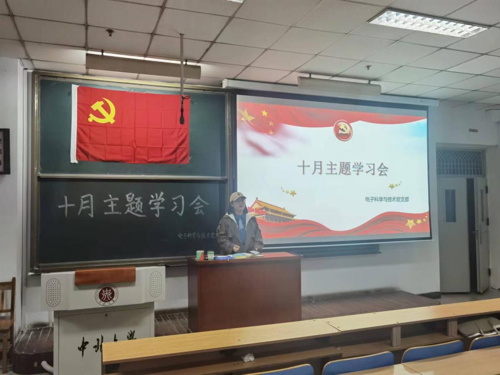电子科学与技术党支部在11105H教室召开十月理论学习会。支部全体党员、预备党员、发展对象、积极分子参加会议。