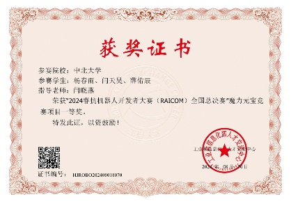 Ø 2024年,获睿抗机器人开发者大赛魔力元宝竞赛项目全国一等奖;