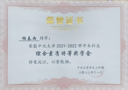 2021-2022学年本科生综合素质特等奖学金;
