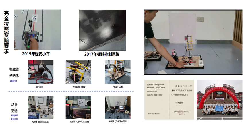 走遍12座城市,斩获21国家级奖项,36省级奖项,我喜欢挑战不可能,并且我做到了。梦想有的时候就是那一股子闯劲,记得大二的时候,我参加全国大学生电子设计竞赛,从赛题下发后,做设计,写代码,调参数,四天三夜的比赛时间,我只睡了不到20个小时,好多次陷入困境和绝望,但是我们都扛了下来,当时甚至为了节省经费,我们三人蹲在面包车的后备箱里和材料抱作一团,最终成为我校唯一一组进入全国复测的低年级学生团队,那段日子很苦,但回忆很甜。