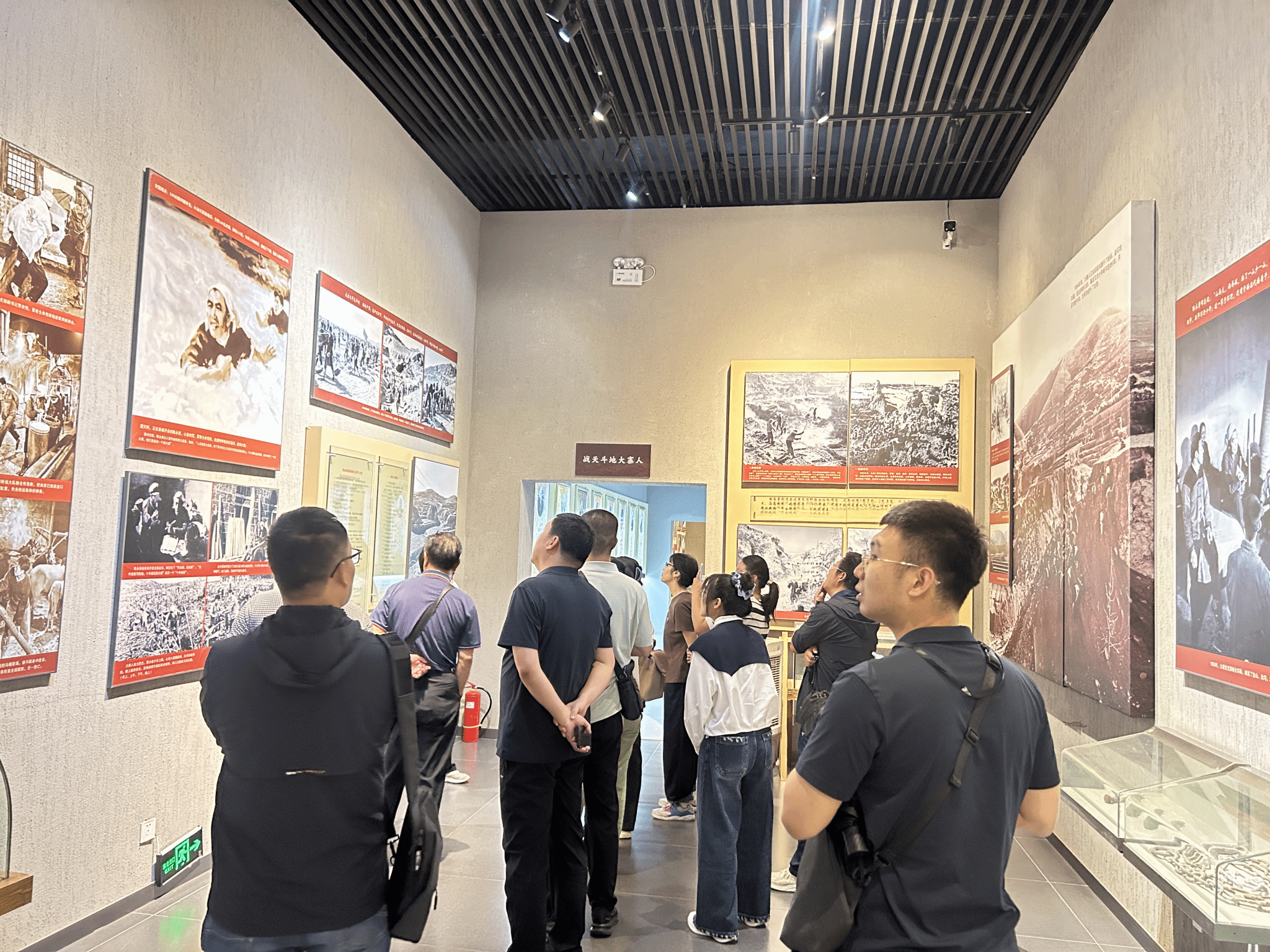 同志们首先攀登了象征大寨精神的虎头山,沿蜿蜒山路前行,仿佛再现昔日大寨人战天斗地、垒石造田的壮观景象。站在山顶俯瞰层层梯田,在狼窝掌、团结沟渡槽等遗址前驻足凝望,大家深切感受到当年改造河山的艰辛与豪迈。随后在纪念馆内,通过实物展陈、图文影像和生动讲解,系统了解从“三战狼窝掌”到“七沟八梁一面坡”的奋斗历程,被大寨人民不畏艰难、自力更生的集体主义精神深深感染。最后漫步红旗一条街,街道两旁颇具年代感的建筑和标语,让大家仿佛穿越时空,回到了那个火红的年代。这条街不仅保留着历史的风貌,更传承着大寨精神的红色基因。大家边走边看,边思边议,结合之前的所见所闻,热烈讨论着大寨精神在新时代的传承与发扬。