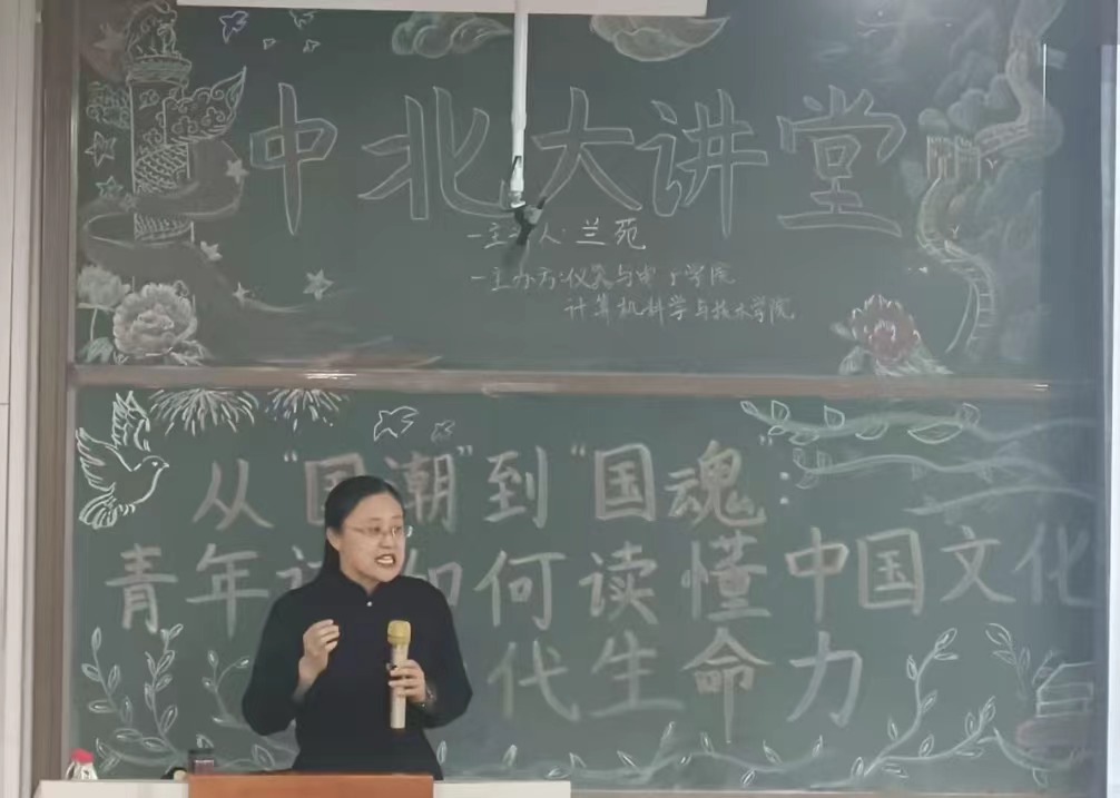 、计算机科学与技术学院联合承办的 “中北大讲堂” 在 15106H 教室如期举行。本次活动特邀中共山西省委党校(山西行政学院)文史教研部兰苑教授,以《从“国潮”到“国魂”:青年该如何读懂中国文化的当代生命力》为题,为现场师生带来一场兼具思想深度与实践指导意义的文化分享。