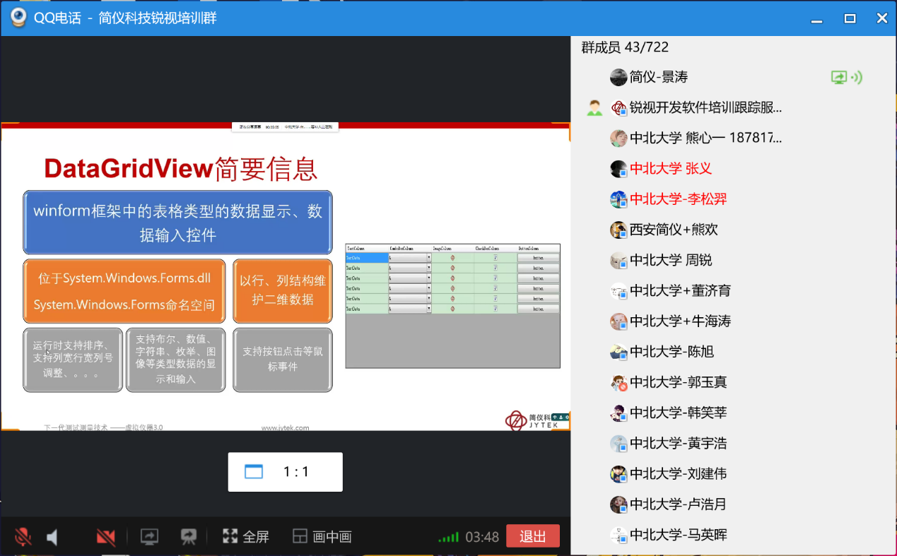 6月8日晚19:30,由简仪公司景涛通过qq群直播,讲解了关于C#中的DataGridView。
