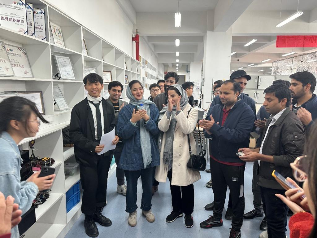 2023年11月5日中午12:00,创新精英研究院鸿蒙生态&IOT创新实验室成功举办了一场别开生面的英语座谈会,邀请了来自巴基斯坦的留学生们参观实验室。