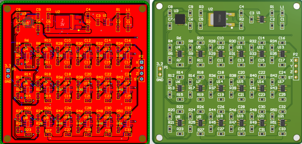 刘丽双和温焕飞老师指导各组成员根据传感器特性和测量电路指标要求设计信号调理电路,包含供电、放大、偏置、滤波四个电路单元,通过分析各单元电路实现的功能来完成设计,绘制出其电路仿真图、原理图、PCB图,该设计电路的器件选型。