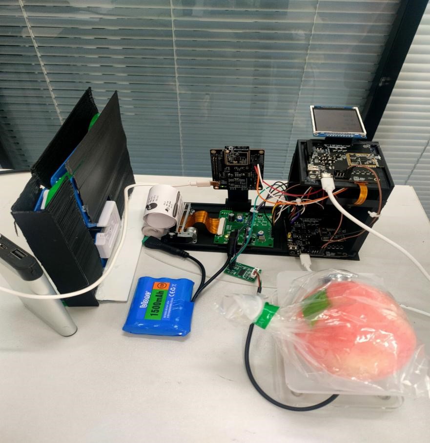 本产品分为软件和硬件两部分,软件——小程序根据注册方式的不同分为两种运行模 式,分别对接客户和商家,对于客户而言小程序可以及时了解菜价变动,对于商家而言, 小程序可以每日及时更改菜价,同时精准的统计交易量。硬件——智能视觉电子秤由三部 分组成,封口机,视觉称重台,打印(凭条)机。软件方面使用小程序和 MySQL 数据库,用于记录每日交易量和更改果蔬价格, 并且记录智能电子秤的实施工作状态,硬件方面使用了两个 BL706 主板和一个 BL604 主板, BL706 的摄像头实时捕获产品照片,通过 BL604 联网并且连接百度云服务器,进行图像识 别,识别完水果的种类后,将结果发送至另一块 BL706 主板,另一个主板则根据识别的种 类确定价格,进行 ADC 数模转换,滤波稳定价格的操作来称重,然后计算总价,并打印出 凭条。软件和硬件之间通过蓝牙来连接,软件向硬件发送要更改的价格信息,而硬件把每 次的成交额发送到小程序,由数据库做成日志,方便统计和调查。