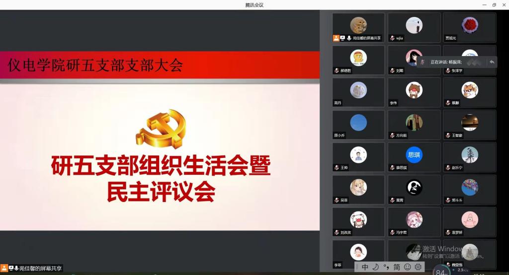 大会总共分为三部分:第一:以党小组会形式开展党员自评何互评;进行民主测评;第二:召开支部大会,党小组代表发言,支部书记进行总结;第三:支委向上级领导进行总结汇报,接受指导。会上,第一党小组蔡麒和王采慧代表党小组发言;第二党小组杨振泽和薛思琪代表党小组发言;第三党小组裴攀 和宋承玮代表党小组发言;第四党小组贾涛和孙华荣代表党小组发言;第五党小组贾莉和贾旭光代表党小组发言。他们对自己一年来的生活和工作进行了总结,指出自己的不足,并对这些不足给出了解决的方法和措施。最后党小组以线上匿名投票的形式进行了民主自评,结果为24个党员被评为优秀,其余党员均合格。最后支部书记王佳进行总结。