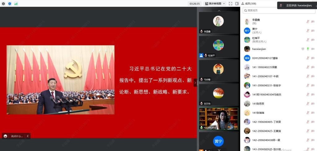 党委书记郝晓剑教授以《学习党的二十大报告中的新观点、新论断、新思想》为题,通过腾讯会议,面向学院全体师生进行了宣讲。