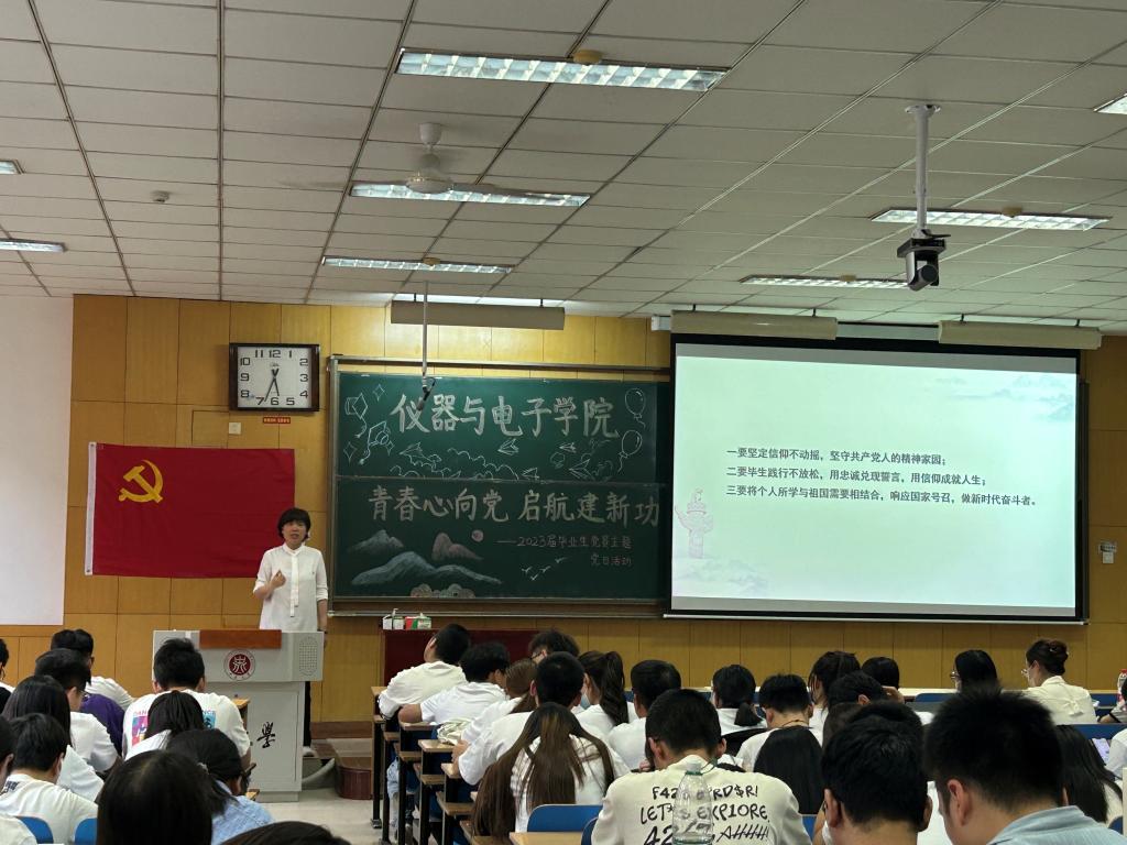 于6月9日下午,在11208H教室举办了“青春心向党 启航建新功”——2023届毕业生党员主题党日活动。学院党委书记郝晓剑、学院党委副书记杜瑞平、各学生支部书记出席,全体毕业生党员参加活动。