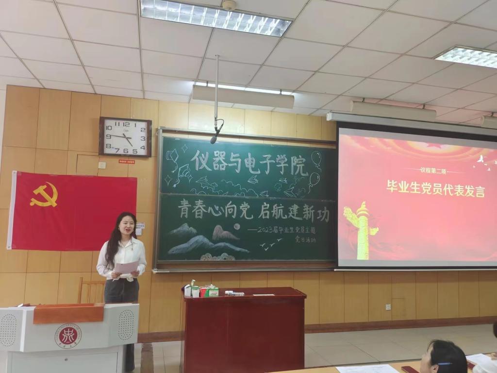 随后,研究生党员杨燕栋和本科生党员温蕙宇做为毕业生代表进行了发言,两位同学表示感谢学院党委和党支部培养,离开校园后仍将牢记党员身份,用行动扛起责任,以拼搏昭示希望,将个人价值同国家进步、民族发展融为一体,走好人生发展之路,为中国发展注入新力量,用努力和奉献回报学院,回报母校,回报社会。