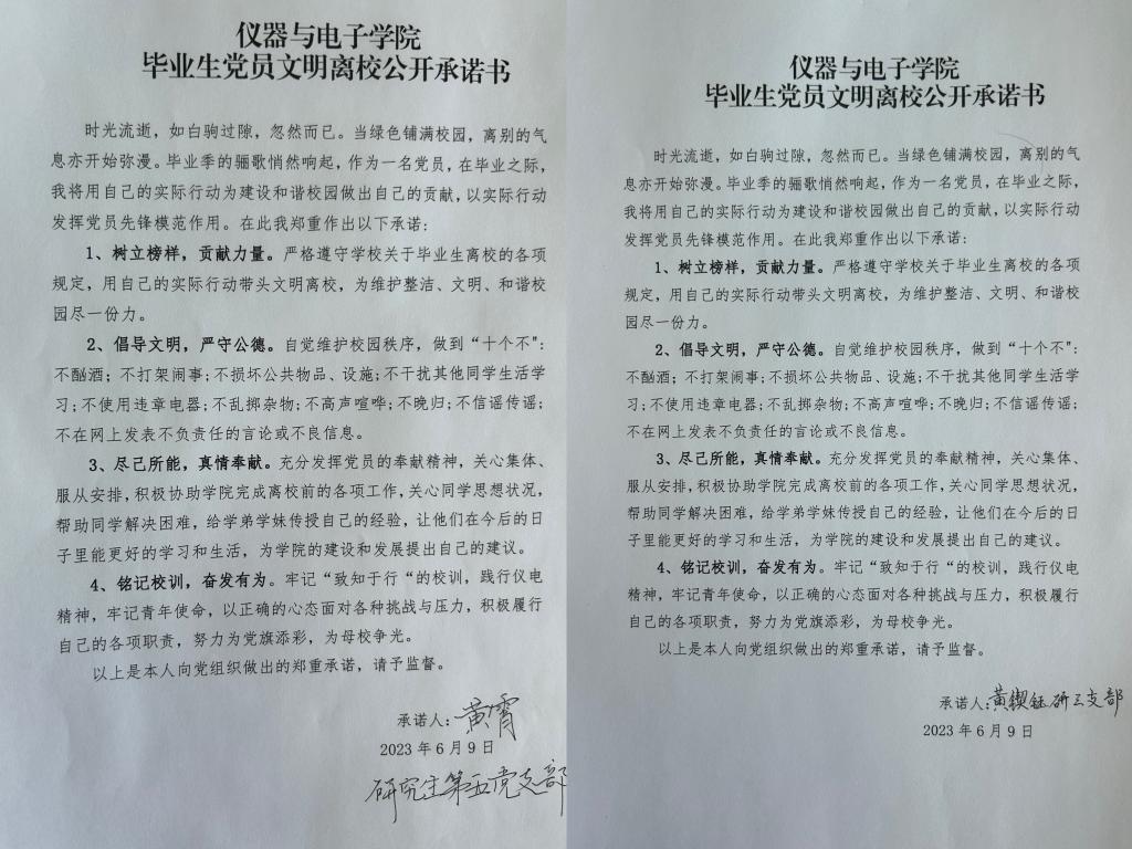 活动第三项,学院党委面向全体毕业生党员发出倡议,在毕业季这样一个关键阶段,希望大家积极展现共产党员的精神风貌,在文明离校过程中充分发挥模范带头作用,引领广大毕业生遵守校纪校规,感恩母校,规范言行,做文明离校的宣传员和践行者,所有党员同学在现场郑重签署了《海棠书屋