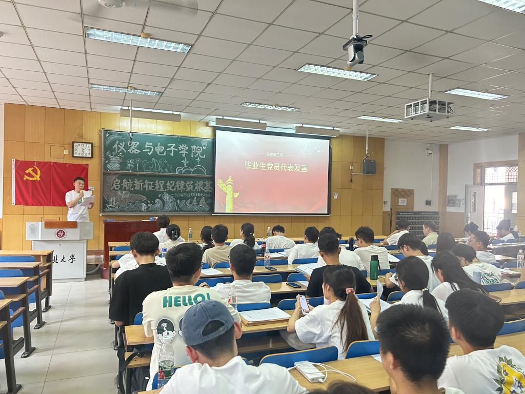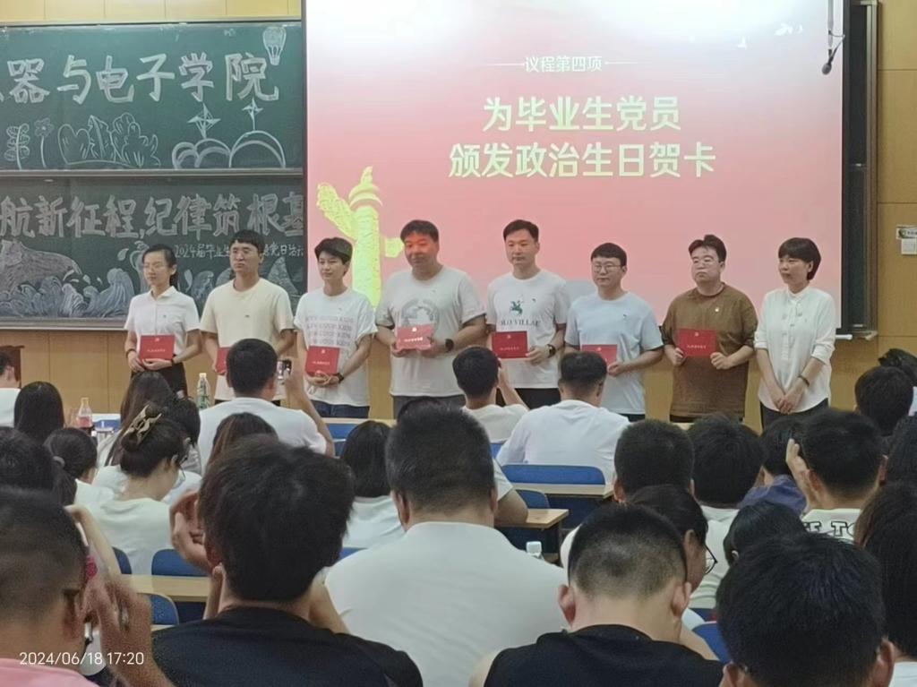 于6月18日下午,在11208H教室举办了“扬帆启征程 纪律筑根基”——2024届毕业生党员主题党日活动。学院全体毕业生党员齐聚一堂,庄重而热烈地度过在校期间最后一次党日活动。