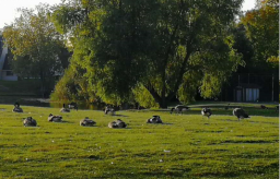 除此之外,学校的自然环境也非常优美,碧绿的草坪,茂盛的树木、掩映其中的教学楼、在草地上时而觅食时而嬉戏的小松鼠,成群结队的灰雁,都让人心情愉悦。