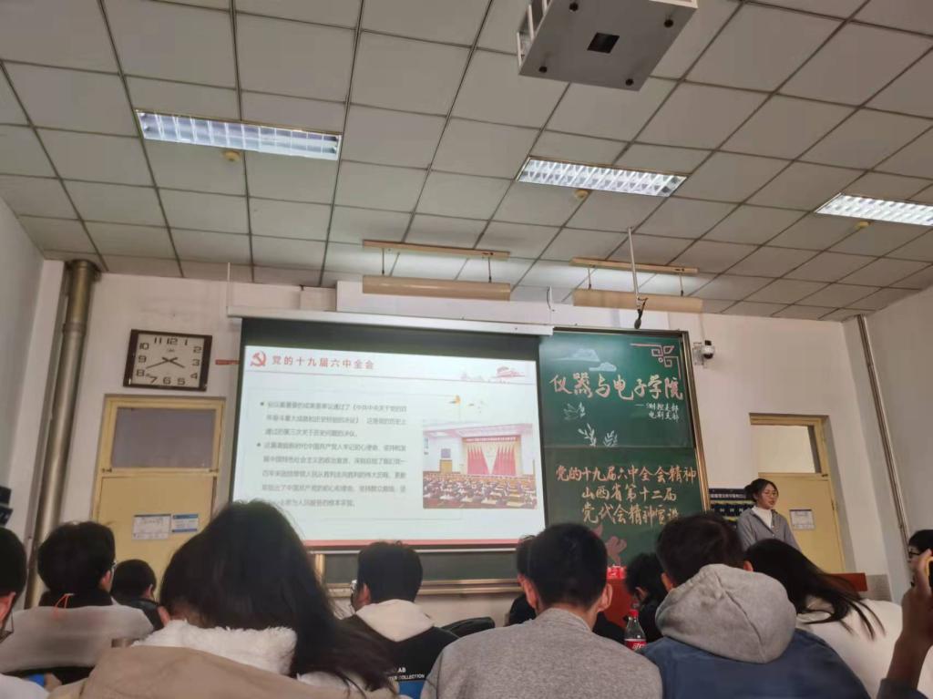 来自仪器与测控党支部的中共党员贺宇昕,首先围绕十九届六中全会的精神,讲述了坚持党的领导,坚持人民至上的原则。紧接着,贺宇昕用《湄公河行动》这部经典电影作为分享,向全体参会人员讲述了她的真实感受。
