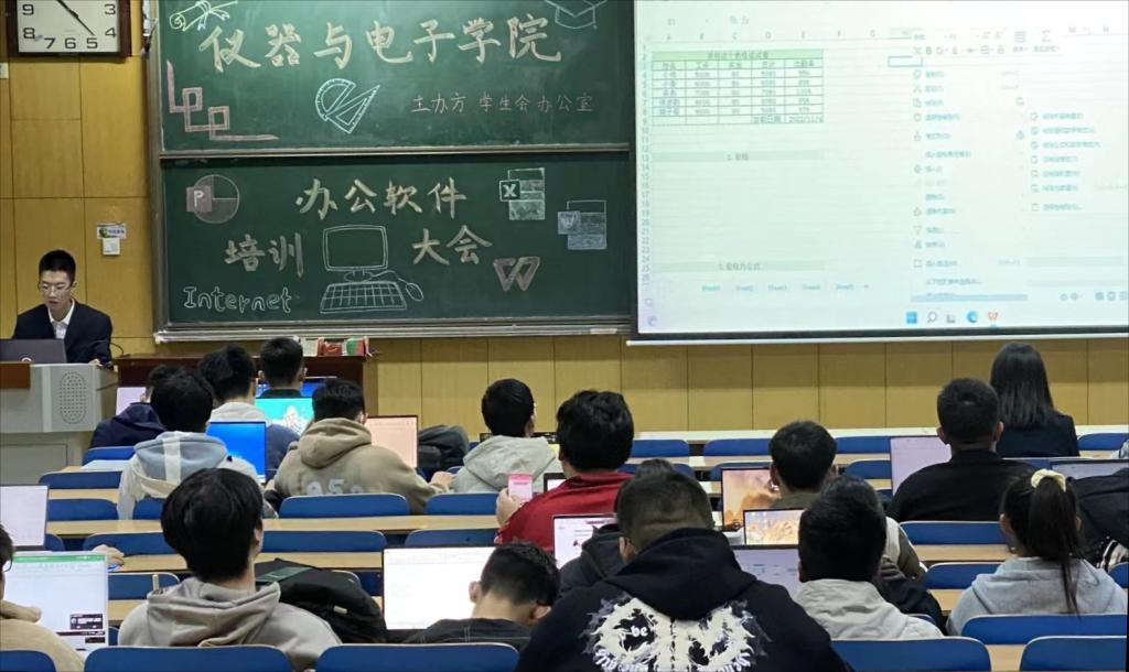 在11108H教室组织并开展了本年度的办公软件培训大会。本次活动主要分为Excel知识讲解、Word知识讲解、有奖竞答三部分,目的在于提高同学们对办公软件的运用能力。
