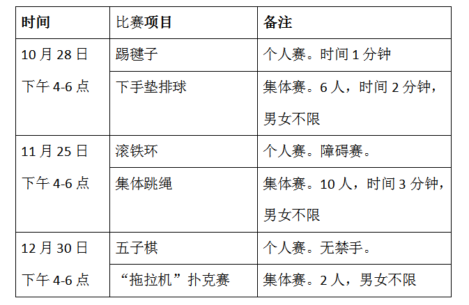 2、个人项目:符合报名条件均可报名;集体项目:200人以下单位,限报1 队,200人以上可报2队。