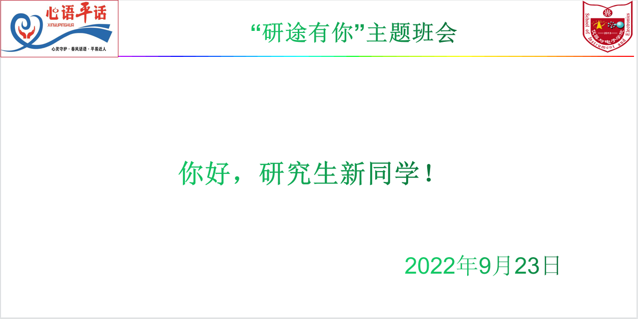 “心语平话”辅导员工作室为461名研究生新同学举行“研途有你”主题班会。工作室邀请学院副院长李杰和2022级的硕士和博士们通过线上进行亲切交流。李杰副院长对“研究在中北”所面临的学学习培养、科研创新等方面娓娓道来,希望研究生们能主动进入研究的新赛道,跑出属于自己最好的成绩。工作室的主持人,学院党委副书记杜瑞平以自己从硕士到博士的求学生涯与新生们进行分享,勉励同学们用积极向上的心态“生活在中北”。研究生会的干部们对学院大家庭做了介绍,并表达了要全心全意做好研究生服务的决心。研究生教育在学院本硕博贯通中起着关键作用,用心用力用情做好研究生新生的教育必将推动学院工作高质量发展。