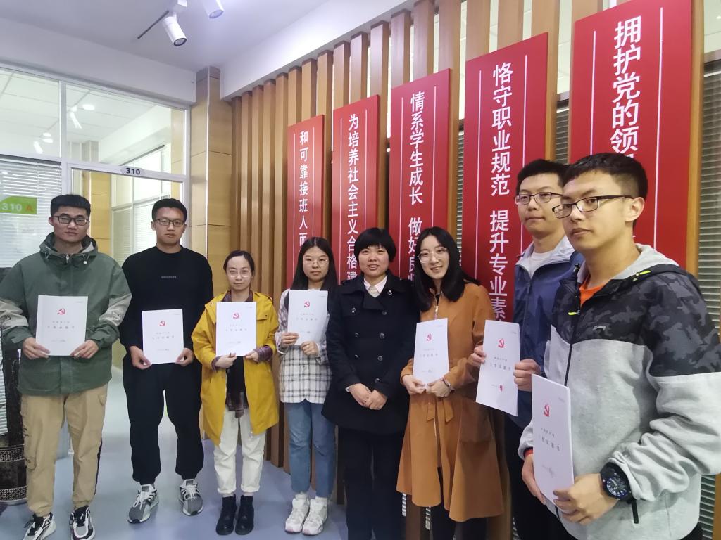 近期加入党组织的7名2017级的毕业生同学们在海棠书屋