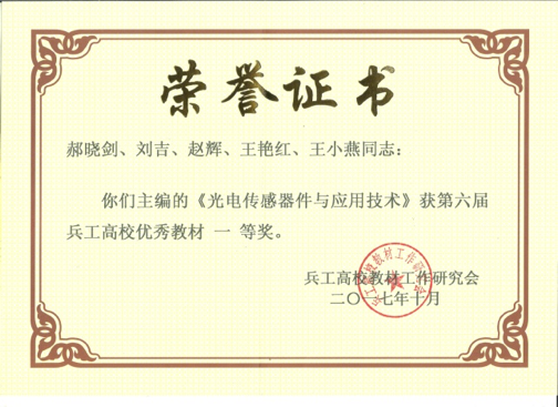 《光电传感器件与应用技术》,主编郝晓剑,2017年获第六届兵工高校优秀教材一等奖。 |