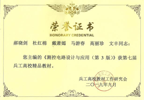 《动态测试技术与应用(第2版)》,主编郝晓剑,获2014年中国电子教育学会“全国电子信息类优秀教材”评选三等奖。 |