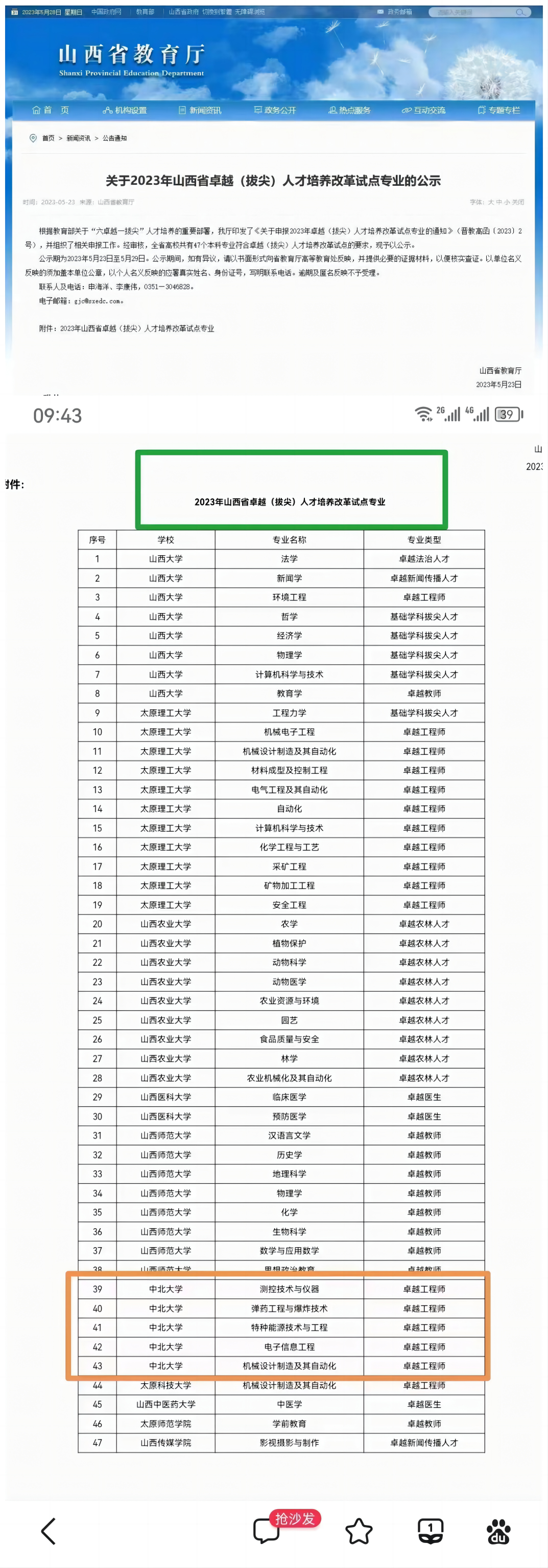 15、测控技术与仪器获批山西省卓越(拔尖)人才培养试点专业,2023年5月。